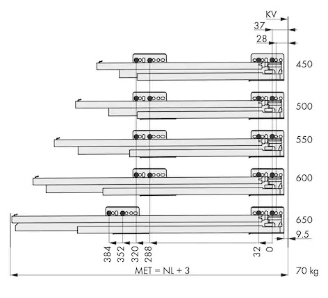 Nova Pro - Telescopisch met Soft-Close 70kg - lengte 50cm