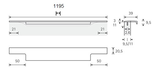 Greep Lamezia - mat zwart - Lengte 1195 mm