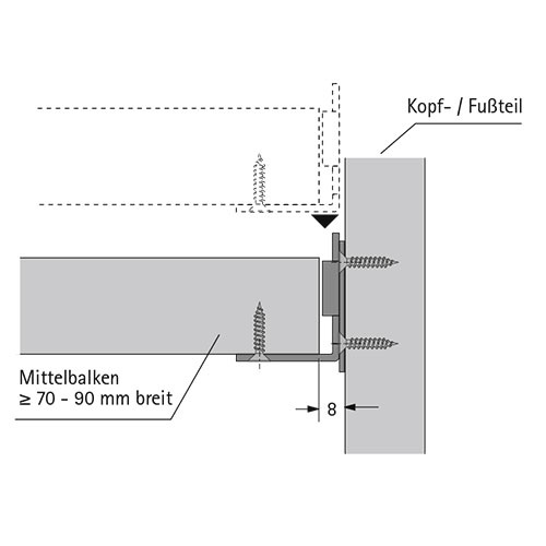 De middenbalkverbinder is geschikt voor houten of metalen bedconstructies, maar kan ook voor gestoffeerde bedden gebruikt worden. De middenbalk dient een breedte vanaf 70 mm te hebben. De belastbaarheid bedraagt 100 kg per stuk.